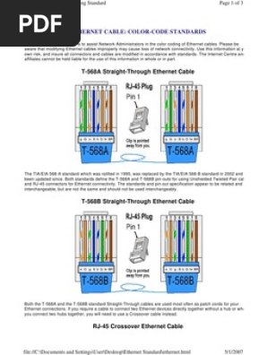 Download Full PDF Package. Scribd is the worlds largest social reading and publishing site. Ethernet Cable Colour Code Standards Methods of Crimping.